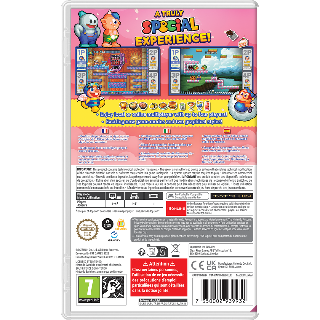 SNOW BROS. 2 SPECIAL ist ein Remake von TOAPLANs 1994 erschienenem Snow Bro. 2. Die IP-Lizenz ist nun an TATSUJIN übergegangen, die das Erbe fortführen werden. Genieße die ursprüngliche Geschichte der Rettung einer Prinzessin vor dem Dämonenkönig, aber jetzt mit vier Protagonisten, deren Charakterdesigns und Grafiken aktualisiert wurden, um sich dem neuen, modernen Stil des Remakes anzupassen, während sie ihre einzigartigen Qualitäten beibehalten.