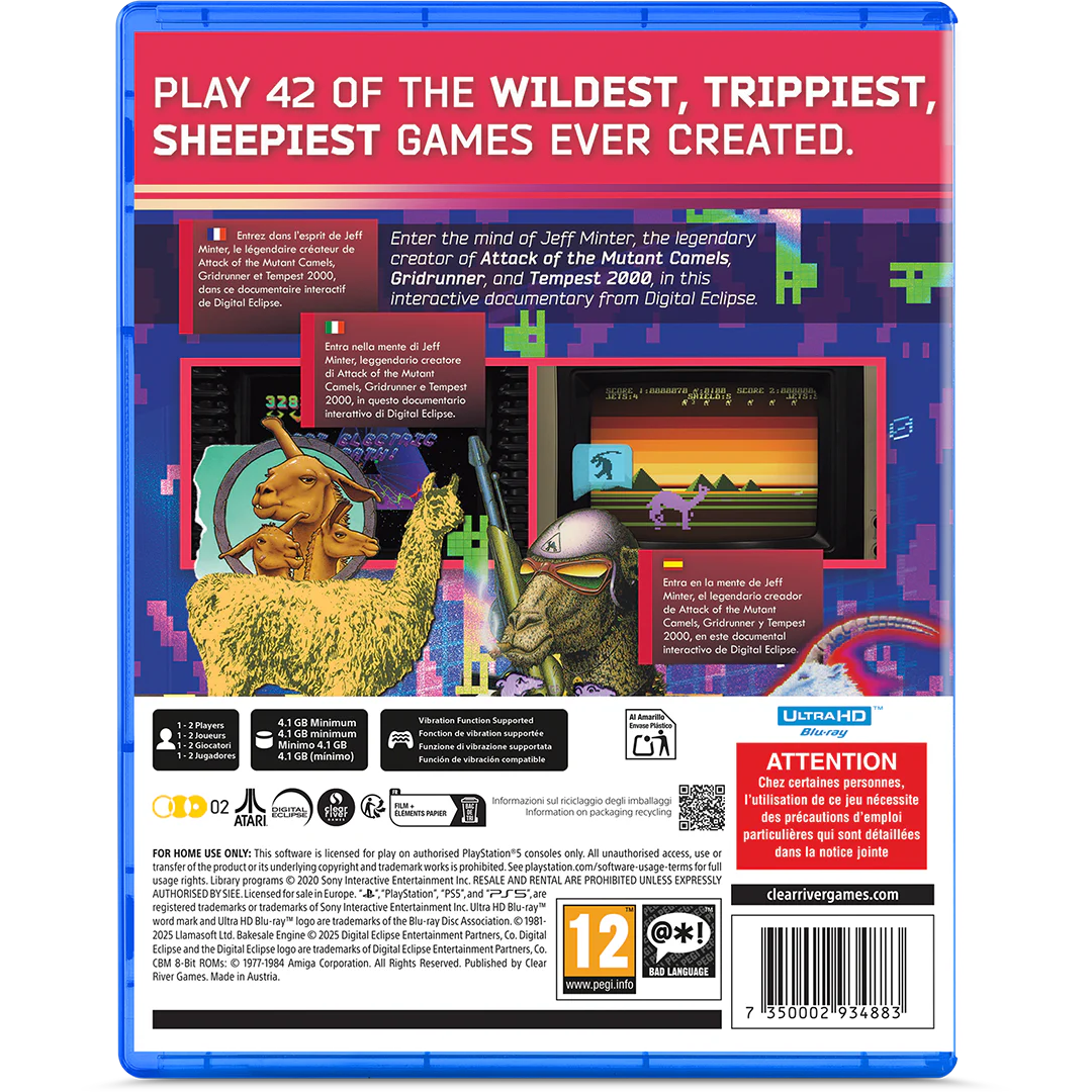 Gridrunner. Revenge of the Mutant Camels. Tempest 2000. Llamatron. Dans l’univers de jeu vidéo britannique des années 80 et 90, personne ne faisait des jeux comme Jeff Minter. Aujourd’hui, dans ce tout nouveau documentaire interactif de Digital Eclipse, vous pouvez jouer et revivre l’histoire de l’un des plus étranges et captivants développeurs de jeu vidéo que la Terre ait connu ; un homme passionné par les jeux de tirs et les moutons, par les lasers et les lamas.