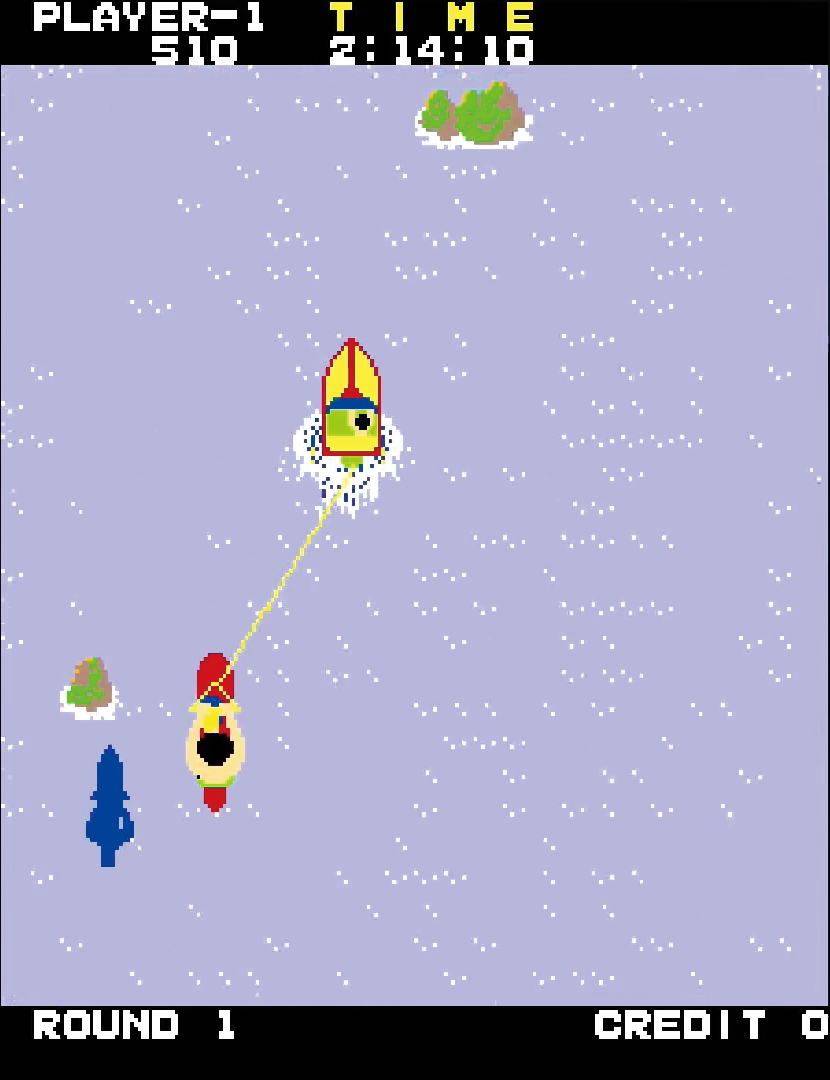 Contrôlez un skieur nautique tiré par un hors-bord tout en évitant les obstacles. Sautez pour esquiver les petits obstacles et utilisez la rampe pour gagner des points ! Attention au requin...